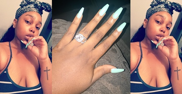 She posted the photos and wrote; “after being the side hoe for 6 years, 33 abortions, and putting his mama in the hospital after running her over in a jeep Cherokee after she called me by his actual girlfriends name, he proposed and i said YES!!!”