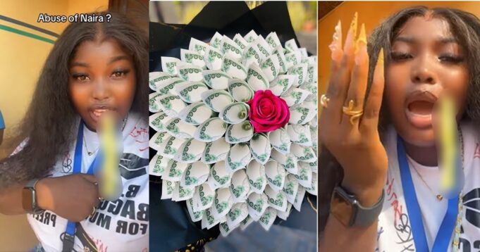 The girl who was signing out from the university that day was intended to be surprised by the sister who had organized a money bouquet to be presented to her.