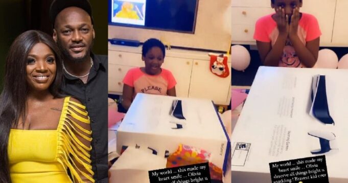 Award-winning singer, 2face Idibia and his wife, Annie, have gifted their daughter, Olivia, a brand new PS5 for her 7th birthday.