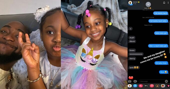 In their conversation, Davido asks his daughter to call him back and though she responds to him, she types gibberish which is amusing to the singer.