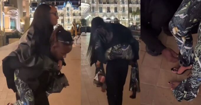 In the latter part of the video, a caring Mr. Eazi is seen bending to help her remove her high-heeled sandals.