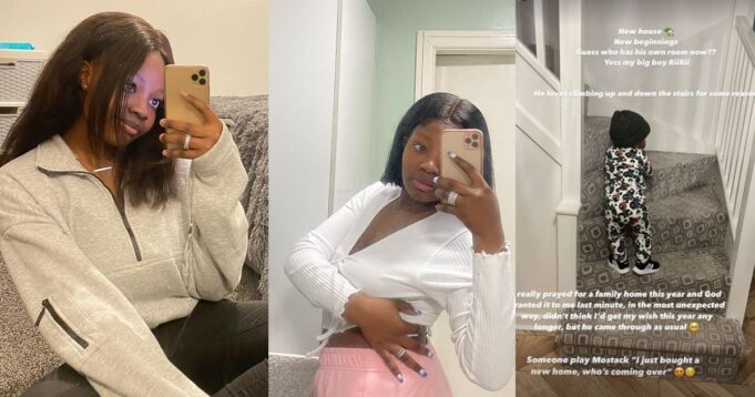 “New house New beginnings Guess who has his own room now?? Yes my big boy RiRi. He loves climbing up and down the stairs for some reason. I prayed for a family home this year and God granted it to me last minute, in the most unexpected way, didnt think I’d get my wish thus year any longer, but he came through as usual. someone play Mostack “I just bought a new home, who’s coming over”.