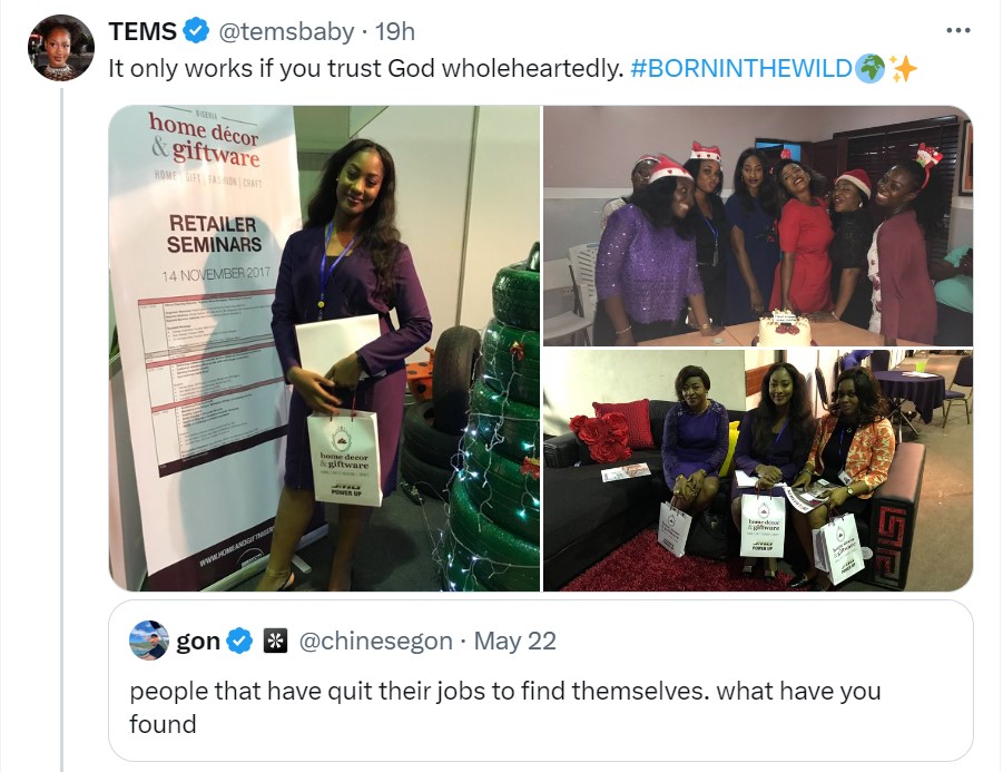 This happened after Tems quoted a tweet that prompted internet users who quit their jobs to pursue something else to show off what they do now.