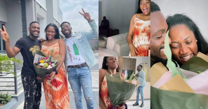 Tobi took to his official Instagram page to share a video which captured the moment the singer showed up at their doorstep with the gifts. According to him, his wife woke up to a bouquet of flowers from Timi while he got a watch.