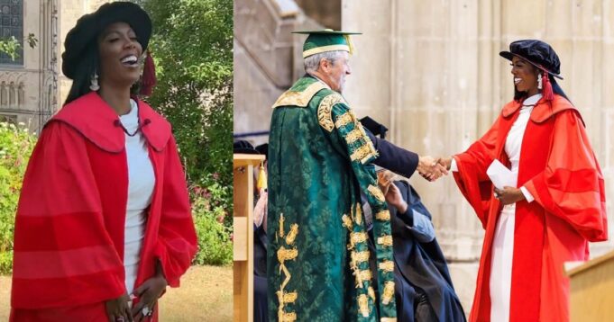 Sensational Nigerian singer, Tiwatope Savage, better known by her stage name Tiwa Savage, has received an honorary doctorate degree from her alma mater, Kent University.