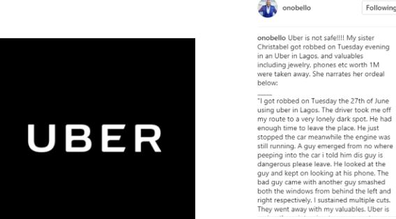 Yet another Nigerian lady has just called out company, Uber, claiming that she was robbed last week Tuesday in an Uber in Lagos, and valuables including jewelry, phones worth 1M were taken away.