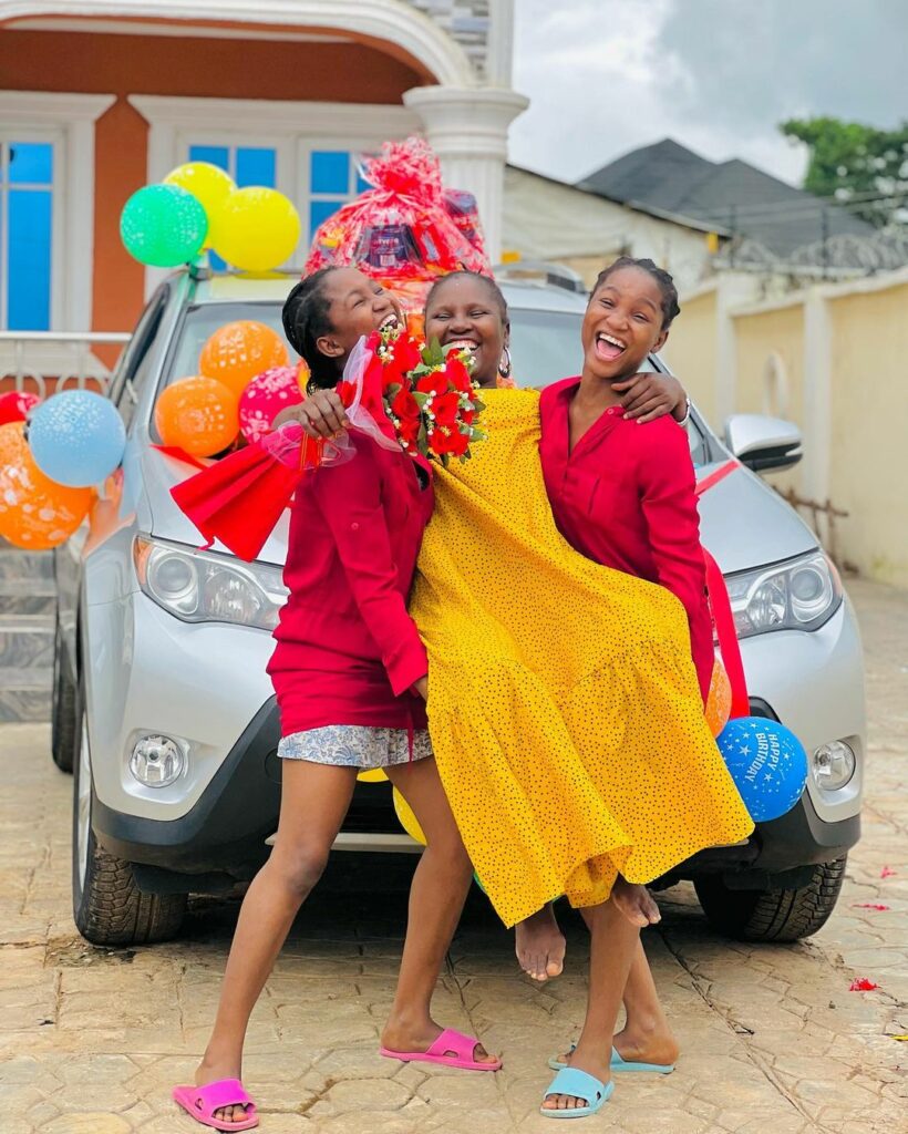 Popular Instagram skit makers, Doyin and Moyin Oladimeji, better known as Twinz Love, have fulfilled the dream of every mother as they gift their mother a new car.