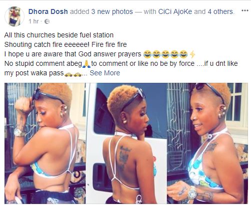A Popular Slay queen, with the Facebook ID, Dhora Dosh has showed off the outfit she rocked today.