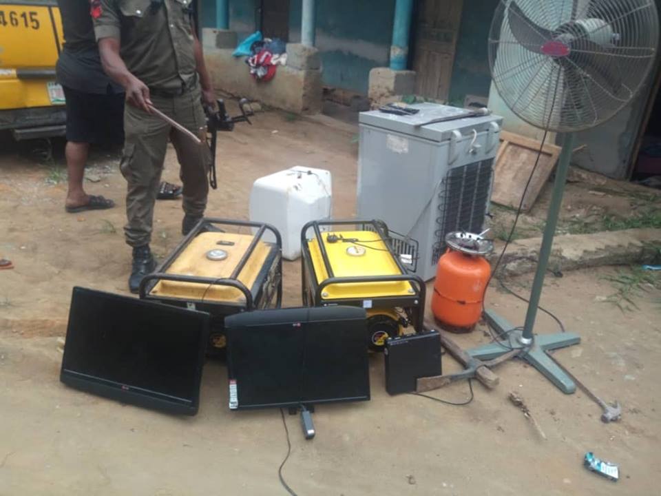 Security agents raided the hideout of the criminal elements and caught them with over 15 stolen Smartphones, brand new generators, refrigerator, laptops and other items belonging to people living around around them.