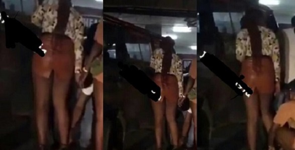 The curvy lady who is yet to be identified was having problems standing properly with her high-heeled shoe, that she almost fell down.