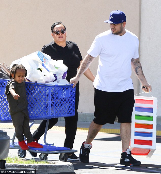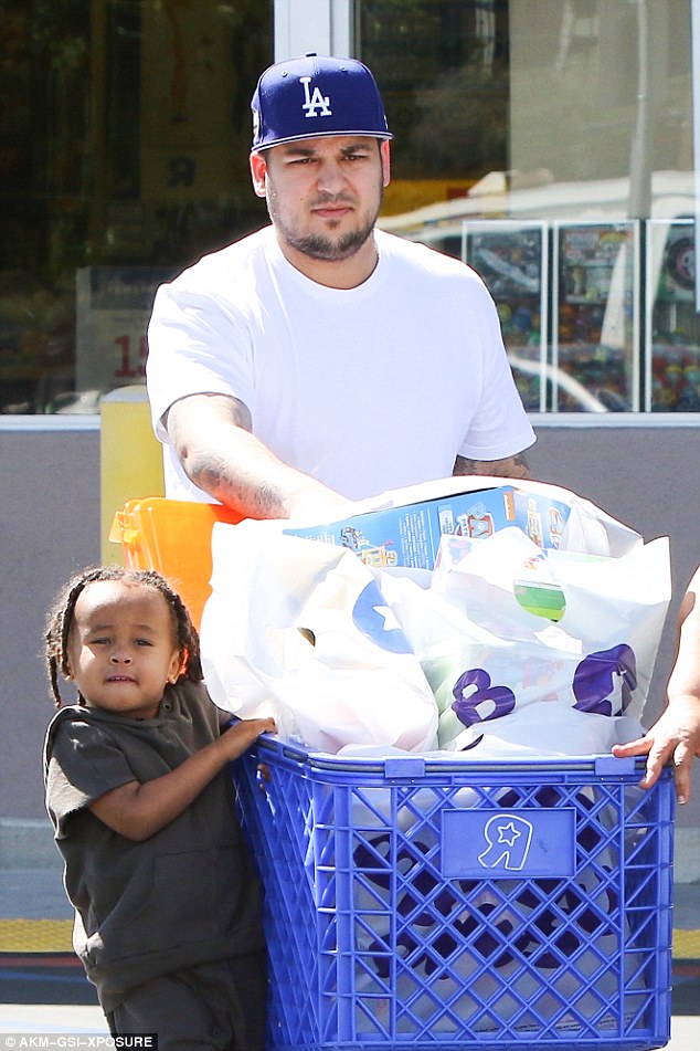 An obviously slimmer looking Rob Kardashian was seen going shopping trip with Blac Chyna‘s son, King Cairo and his nanny.