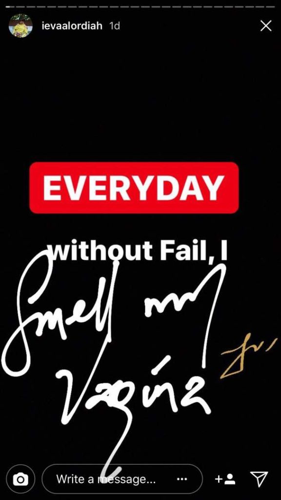 The rapper, via a post she made on Social media, revealed to her fans that she smells hers once everyday… and it has failed nonetheless to smell of something.