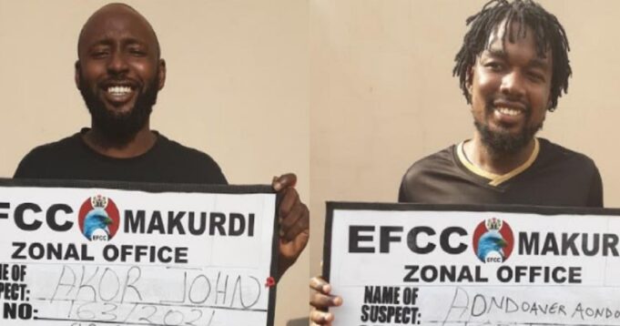 The Economic and Financial Crimes Commission, EFCC, on Thursday July 8, 2021, secured the conviction of John Padre Akor and Aondoaver Aondoseer, who were found guilty of internet-related offences.