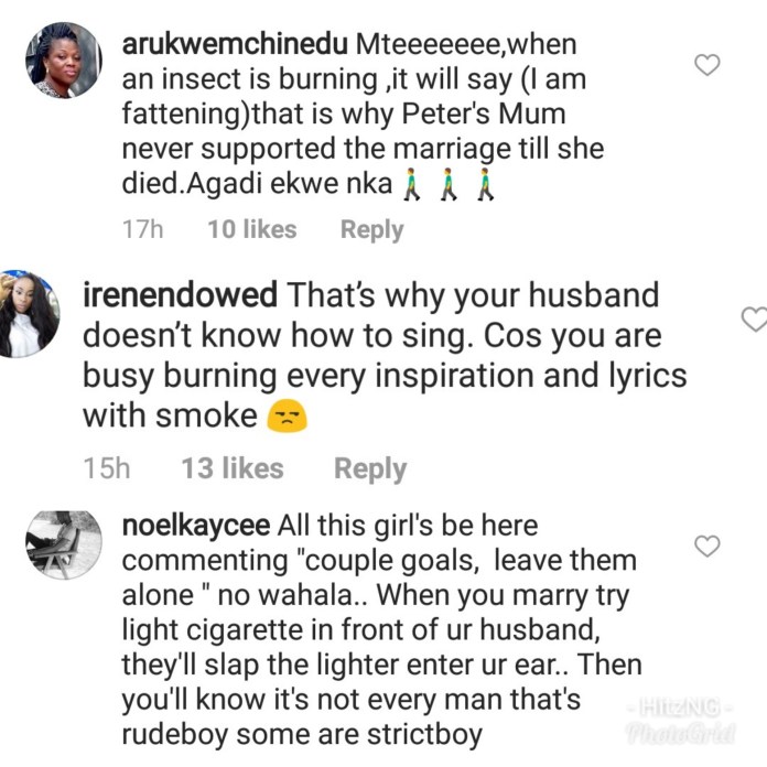 “a smoking wife cannot give good advise!” a fan said while another concluded Lola Okoye was the cause of the Psquare break up!