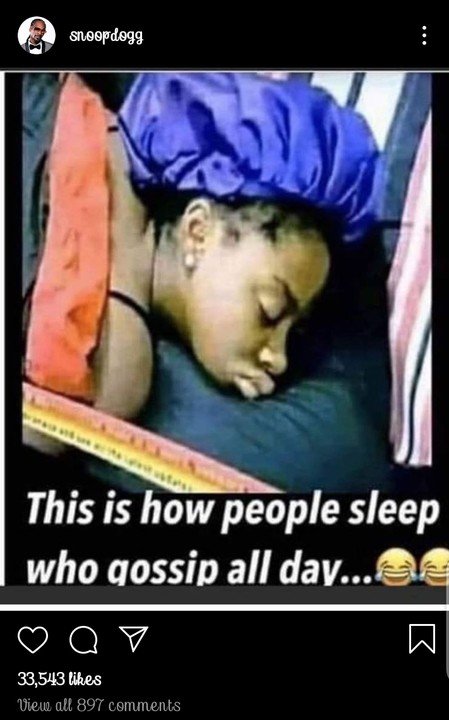 The rapper shared the funny photo, claiming that’s how gossips sleep at night.