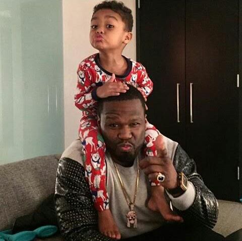 US Rapper and Actor, 50 Cent shared this cute picture on his instagram. The Rapper who just released a new mixtape seems to be having a nice time with his youngest son during this season, We just hope he comes back with his first and estranged son, 25 Cent very soon.