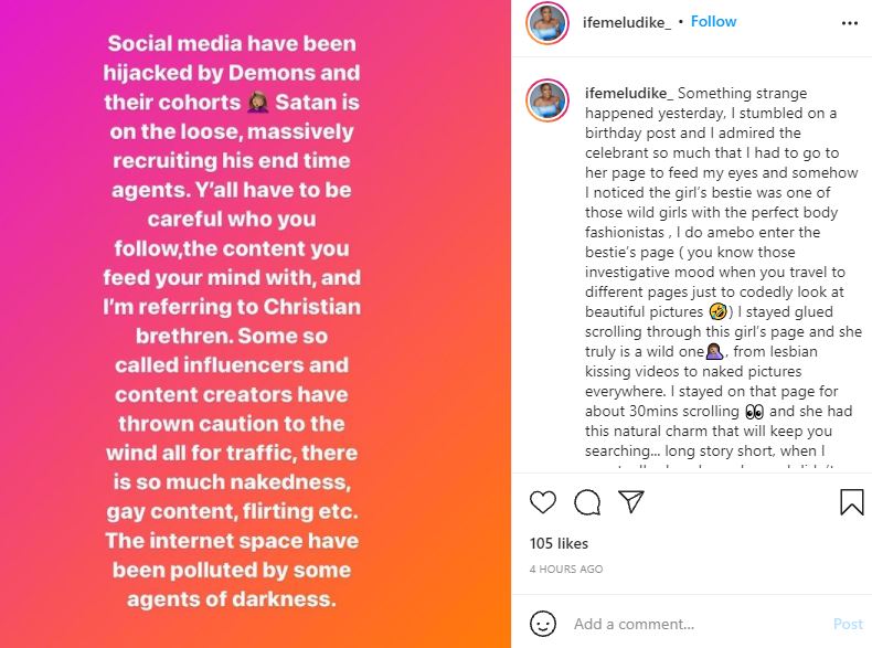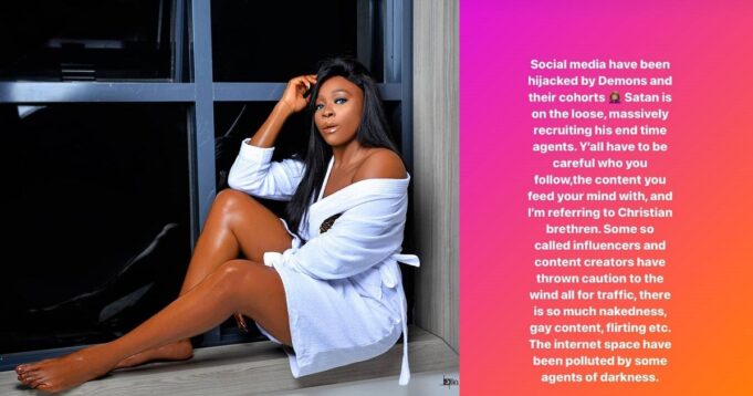 According to her, social media has been hijacked by demons and their cohorts, and Christians need to be careful with the contents they feed their minds with.