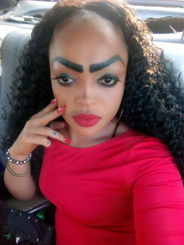 The slay queen (names withheld) had her eye brow lining and total makeup on fleek, see below;