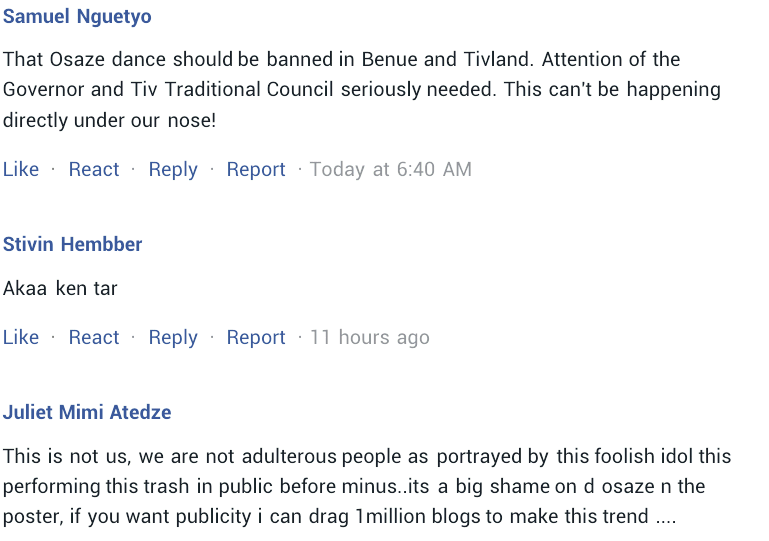 While a reporter Raphael Akume, showered praises on the group as he calls it their ‘culture’, other users were quite enraged by this and said ‘adultery’ is not culture.