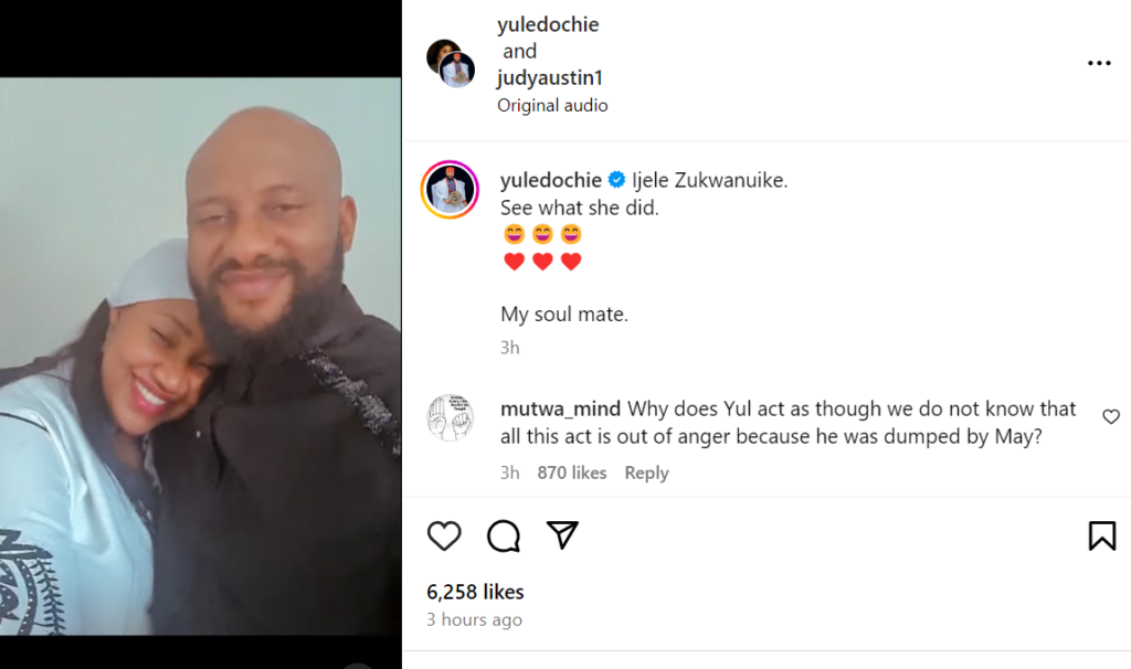 Nollywood actor Yul Edochie has caused a huge buzz online after sharing a video of himself and his second wife, Judy Austin, engaging in a heavy display of public affection.