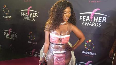Singer Nonhlanhla Qwabe, better known as Skolopad set tongues wagging last night at the 2017 Feather Awards pink carpet when she appeared covered in pieces of boerewors (sausage).