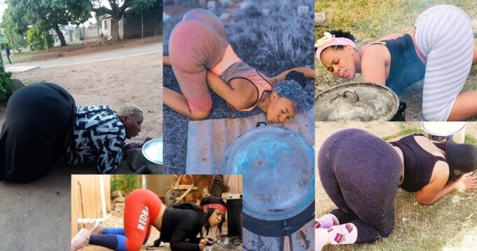 The viral “Vuthela Challenge” has ladies endowed with huge backsides showing off what their mama gave to them. To partake in the challenge, the ladies kneel beside a pot and pretend to be blowing on the fire which protruding their backside which is the center of attraction.