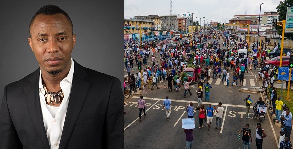 Omoyele Sowore has been heavily criticized by Netizens for encouraging people to risk their lives, while his family are safe in America.