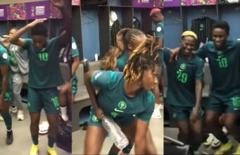 Joy in the locker room as Super Falcons celebrate their win against South...