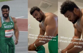 Wash & Wear: Nigeria’s shotput thrower, Chuk Enekwechi washes his “only” jersey after...