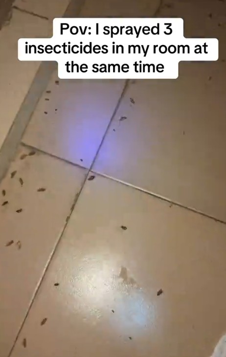 After spending 5 hours outdoors, she returned to her apartment to witness the outcome, only to be astonished by the number of dead insects. She thought they were in small numbers since she saw them in bits, but after spraying her room, she discovered they had hidden corners.