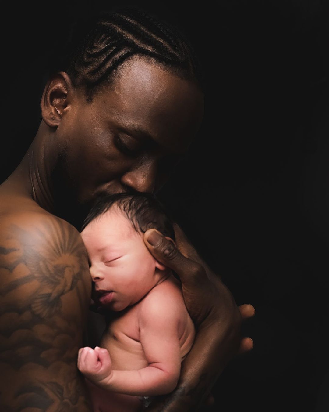 The reality show star, who doubles as an actor and model, is seen massaging his baby boy with so much zeal and attention.