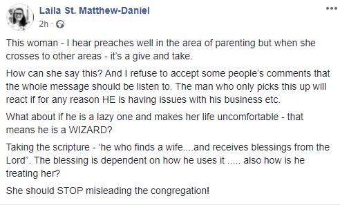 “This woman – I hear preaches well in the area of parenting but when she crosses to other areas – it’s a give and take.