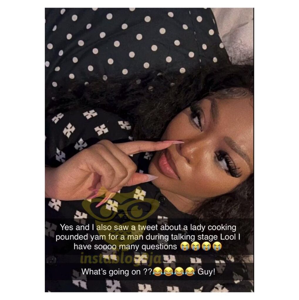 According to her, she can never do chores for a man she is not yet dating, and doesn’t understand women who do such.