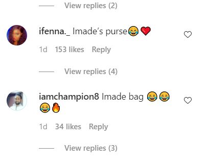 However, observant fans were quick to notice that the beautiful mother of one was rocking the pink bag her baby daddy gifted their daughter, Imade for her sixth birthday, and took to the comment to note their observation.