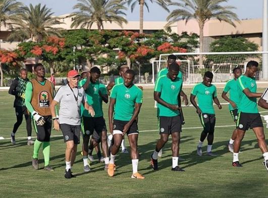 The team finally agreed to train in Alexandria, 30 minutes after schedule, after the Nigerian Football Federation (NFF) promised to pay a win bonus from their 1-0 victory over Burundi on Saturday, by the end of the week.