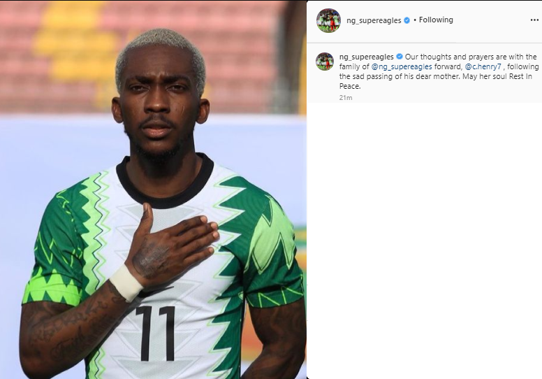 “Our thoughts and prayers are with the family of @ng_supereagles forward, @c.henry7 , following the sad passing of his dear mother. May her soul Rest In Peace,” the statement said.