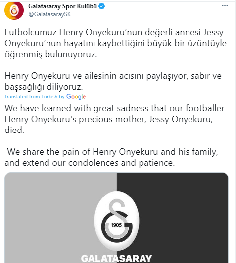 His Turkish club, Galatasaray have also issued a statement to express their sympathy on his mother’s death.