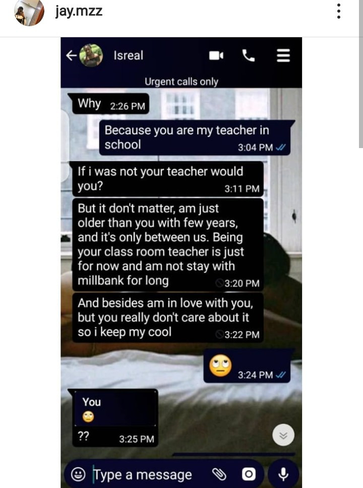 A social media user has accused a secondary school teacher of Paedophilia and he shared disturbing leaked chats to backup his accusation.