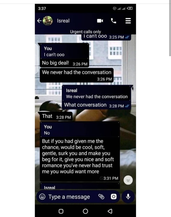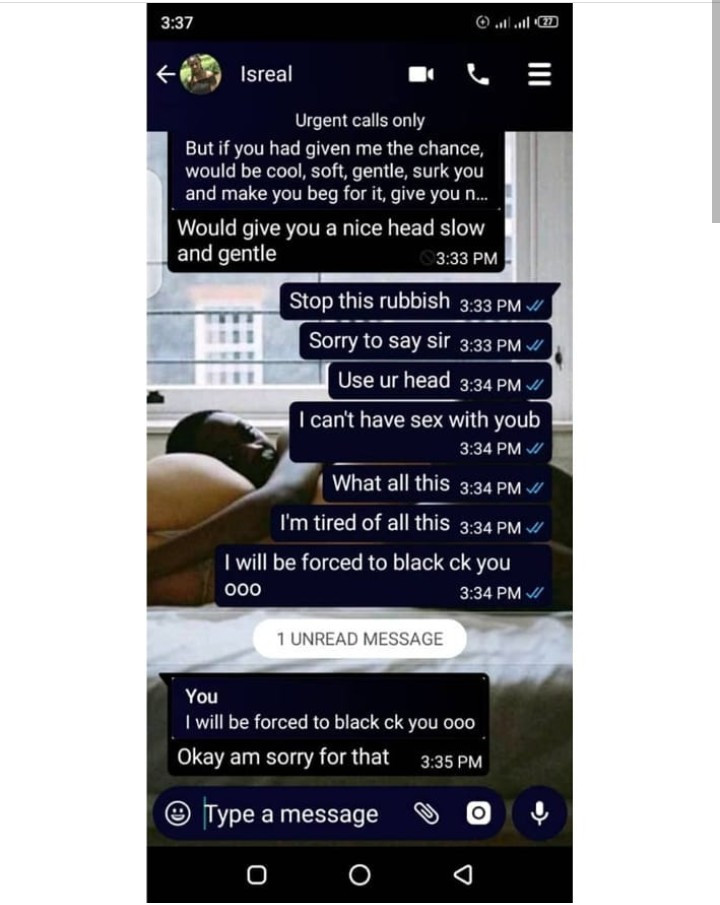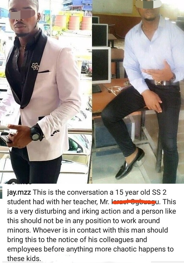 “This is the conversation a 15 year old SS 2 student had with her teacher. This is a very disturbing and irking action and a person like this should not be in any position to work around minors. Whoever is in contact with this man should bring this to the notice of his colleagues and employees before anything more chaotic happens to these kids.”