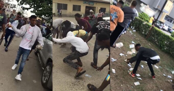 In a video that’s begun serving rounds on the internet, the young man is seen flanked by other students, reported to be of Petroleum Training Institutes in Warri, Delta State, while he sprays Naira notes after completing final exams.