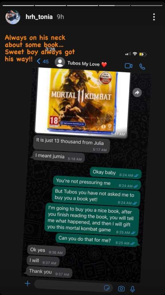 In the WhatsApp chat, Sylvester sent his sister a screenshot of a mortal combat game, and told her to get it for him, adding that it costs only N13,000 from Jumia.