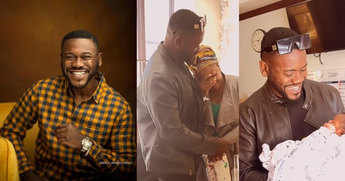 Popular Nollywood actor Deyemi Okanlawon has warmed the hearts of many after paying a surprise visit to his wife, Damilola, and their new baby in the US.