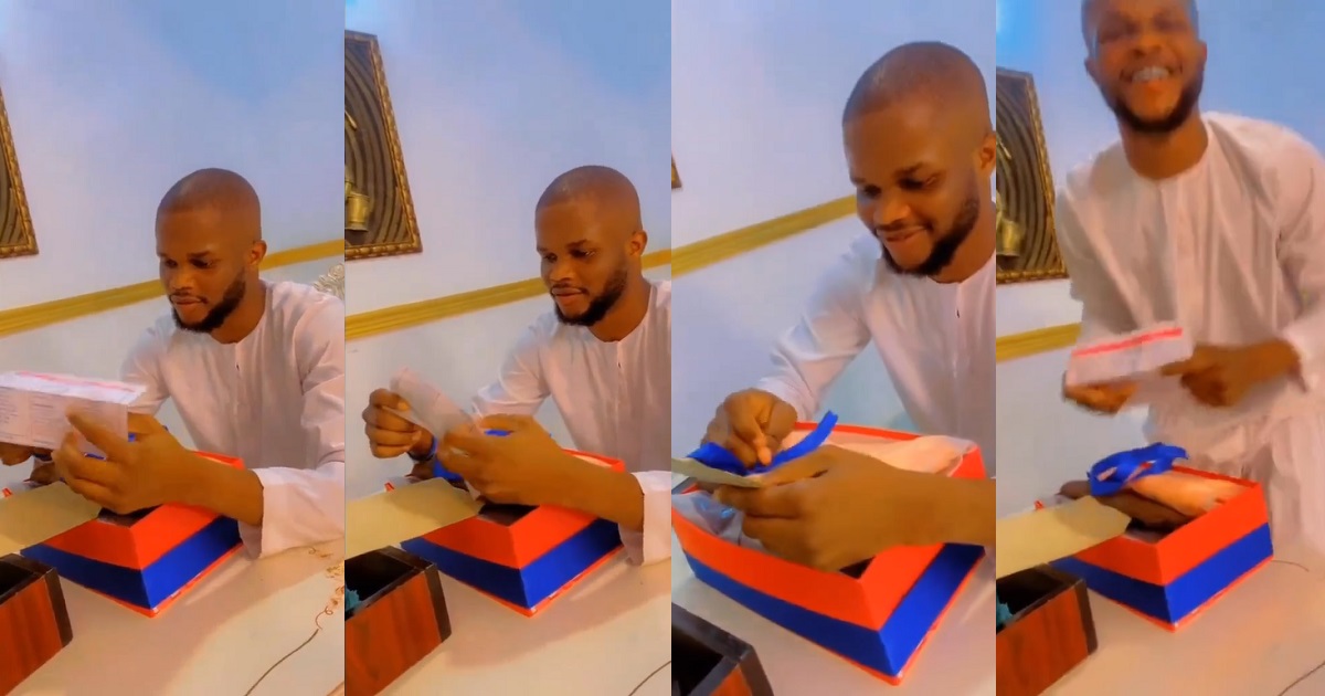 A young lady has presented her husband with a unique birthday gift as she hands him a doctor’s note confirming her pregnancy and captured his hilarious response.