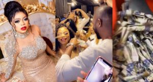 Checkout massive money cake Bobrisky got for his birthday (Video)