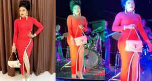 Bobrisky dances on stage as live band sings ‘Lady in red’...