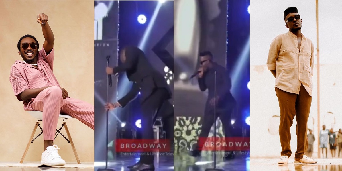 Funny moment Bovi adjusted the microphone for height-impaired rapper MI Abaga...