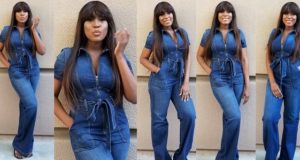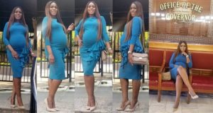 Linda Ikeji and her baby bump stun in lovely blue dress...