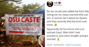 Nigerian man dissolves his marriage after discovering his new wife is...