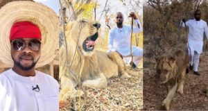 Adebola Williams takes a stroll with a Lion, celebrities reacts (Video)