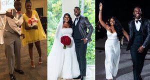 Couple who met at a wedding after the man caught the...